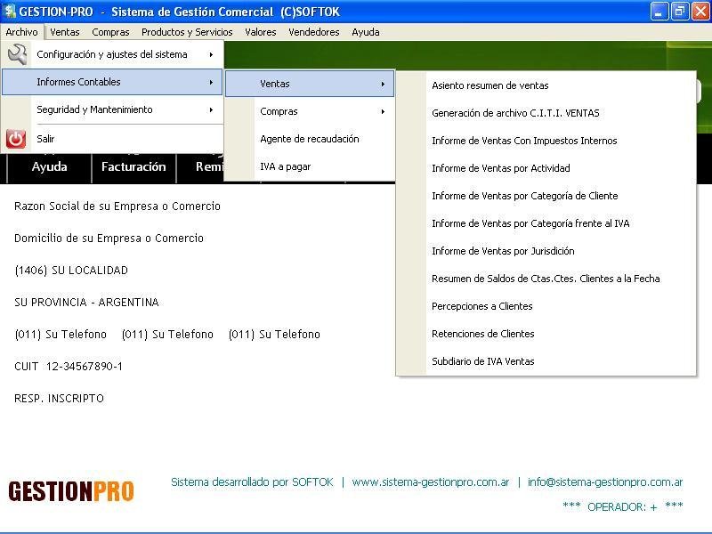 Informes de Ventas por Provincia, por Actividad y por categoría frente al IVA. Ventas con impuestos internos. Registro de percepciones de IVA, Ganancias e Ingresos Brutos para Compras.