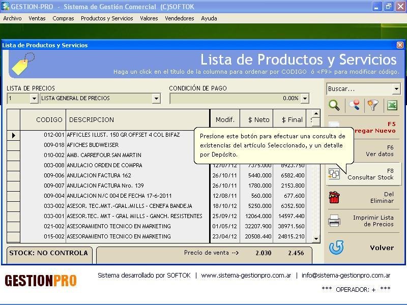 GESTIONPRO es un sistema desarrollado para facilitarle su trabajo de facturación, pagos y cobranzas. Listo para usar, no requiere conocimientos especiales.