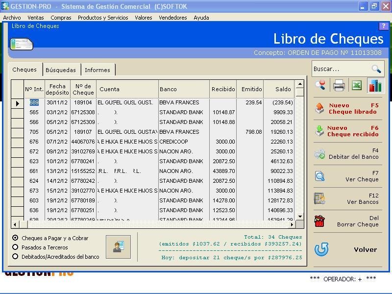 - Registro de cheques, movimientos de cajas, bancos y ventas con tarjetas.